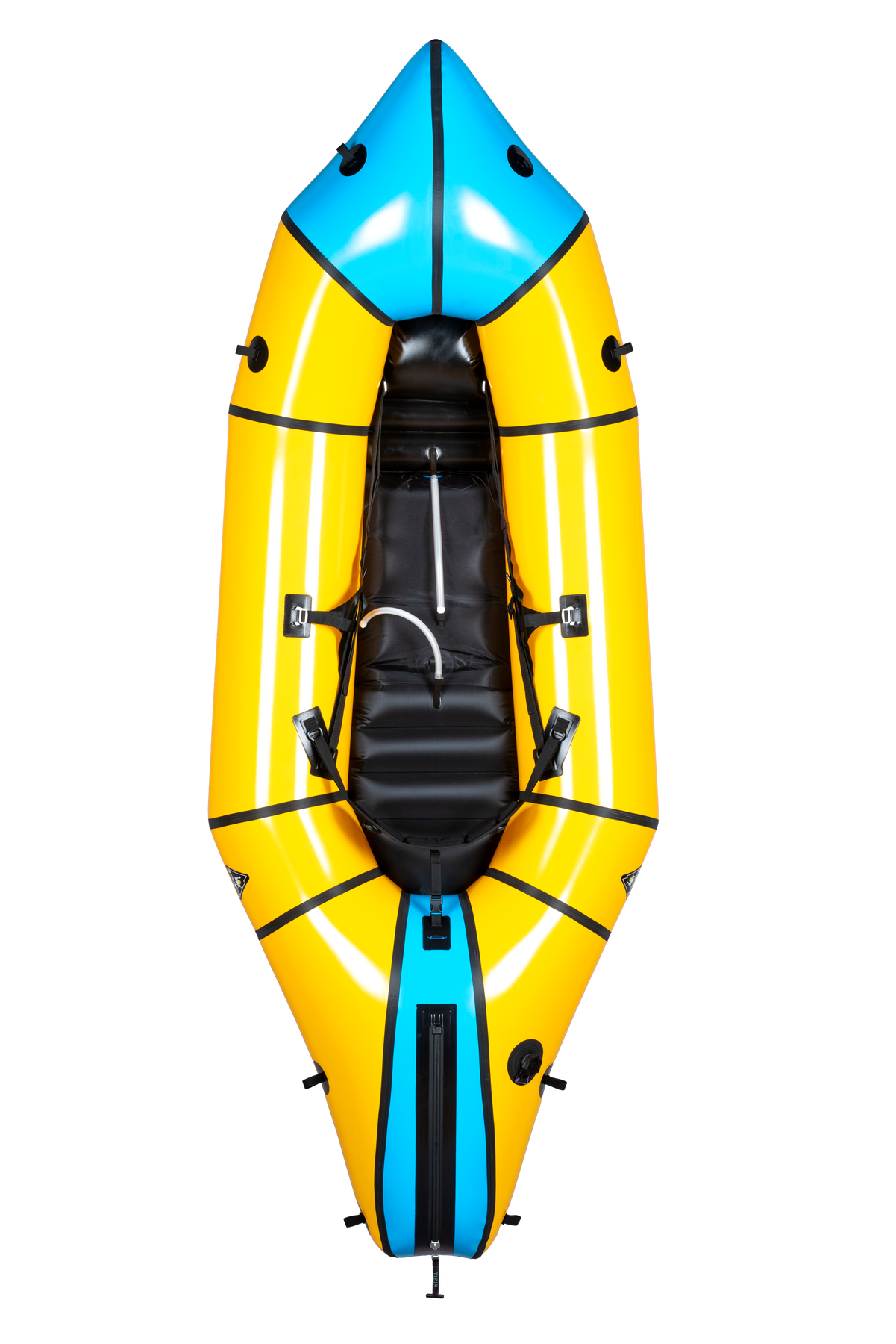 The Gnarwhal is our beginner/intermediate focused whitewater packraft. Its perfect for Lightwater and Class III whitewater adventures.  The hull design is incredibly stable, forgiving and easy to paddle when things start to get wild and you need that extra bit of help to make it through the rapid upright. And when you fall out, the self-bailer means you don’t need to go to shore to reset.