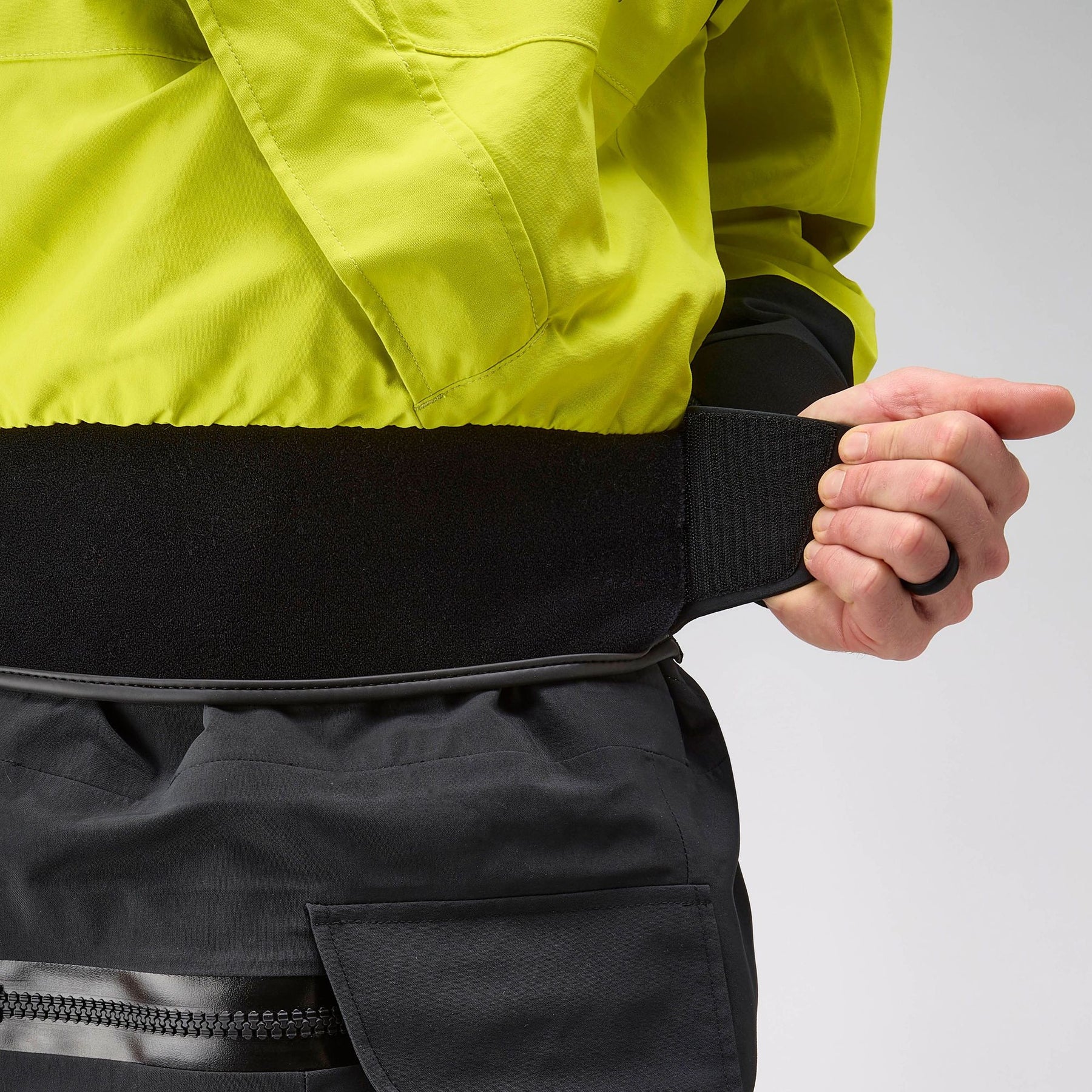 • 5" wide neoprene waist overskirt with double-pull hook-and-loop closure fits over your sprayskirt tunnel for a watertight seal.