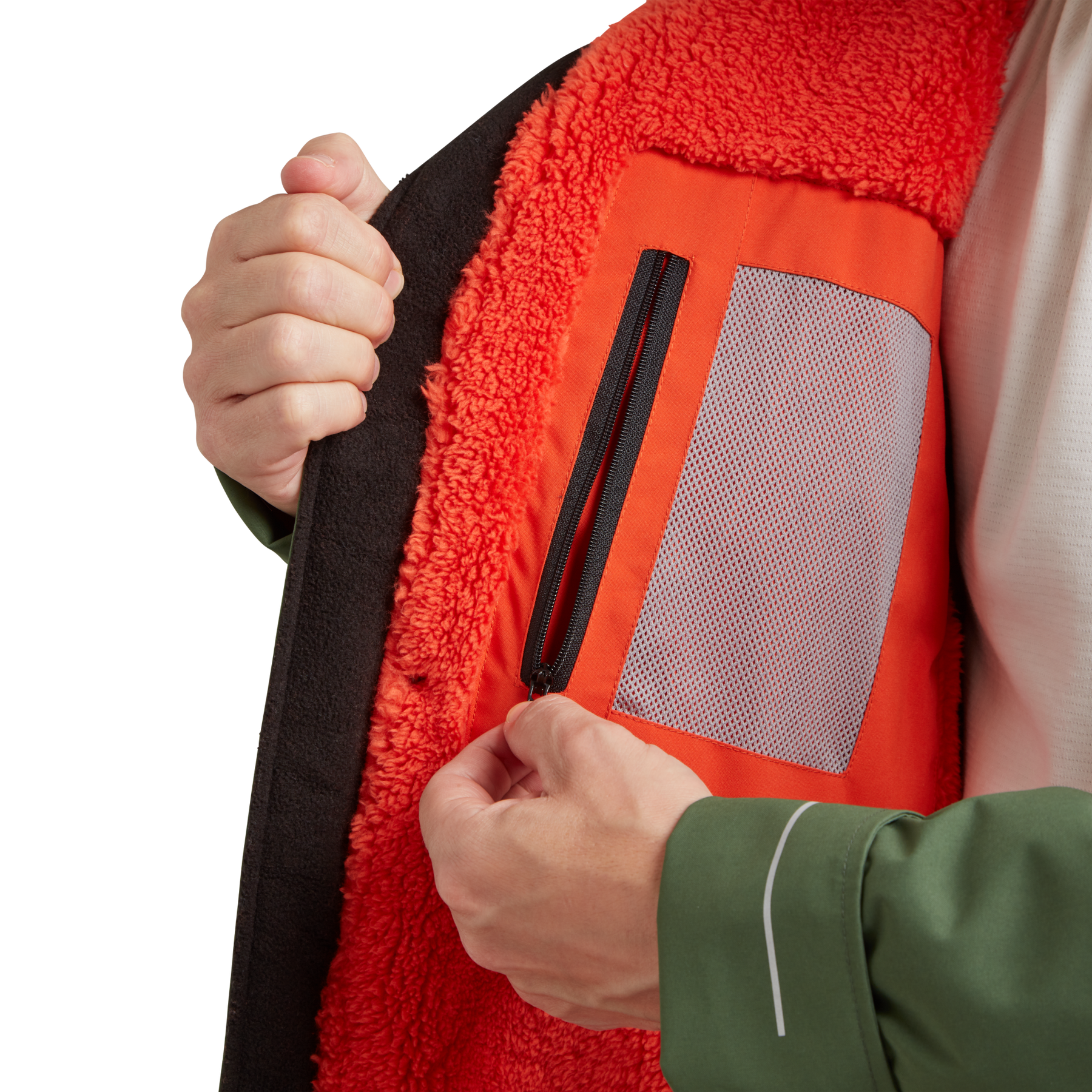 Démarquez-vous avec style grâce à la nouvelle Pro Change EVO, confectionnée à partir de matériaux techniques 100 % recyclés. Son enveloppe extérieure en tissu recyclé 8k/3k, à la fois imperméable et respirante, et dotée d'une conception ingénieuse, vous accompagnera par tous les temps. Le traitement déperlant durable sans PFC assure une excellente évacuation de l'eau. La doublure en polaire recyclée bleu marine, au ton riche, évacue délicatement l'humidité pour un confort optimal et durable.
