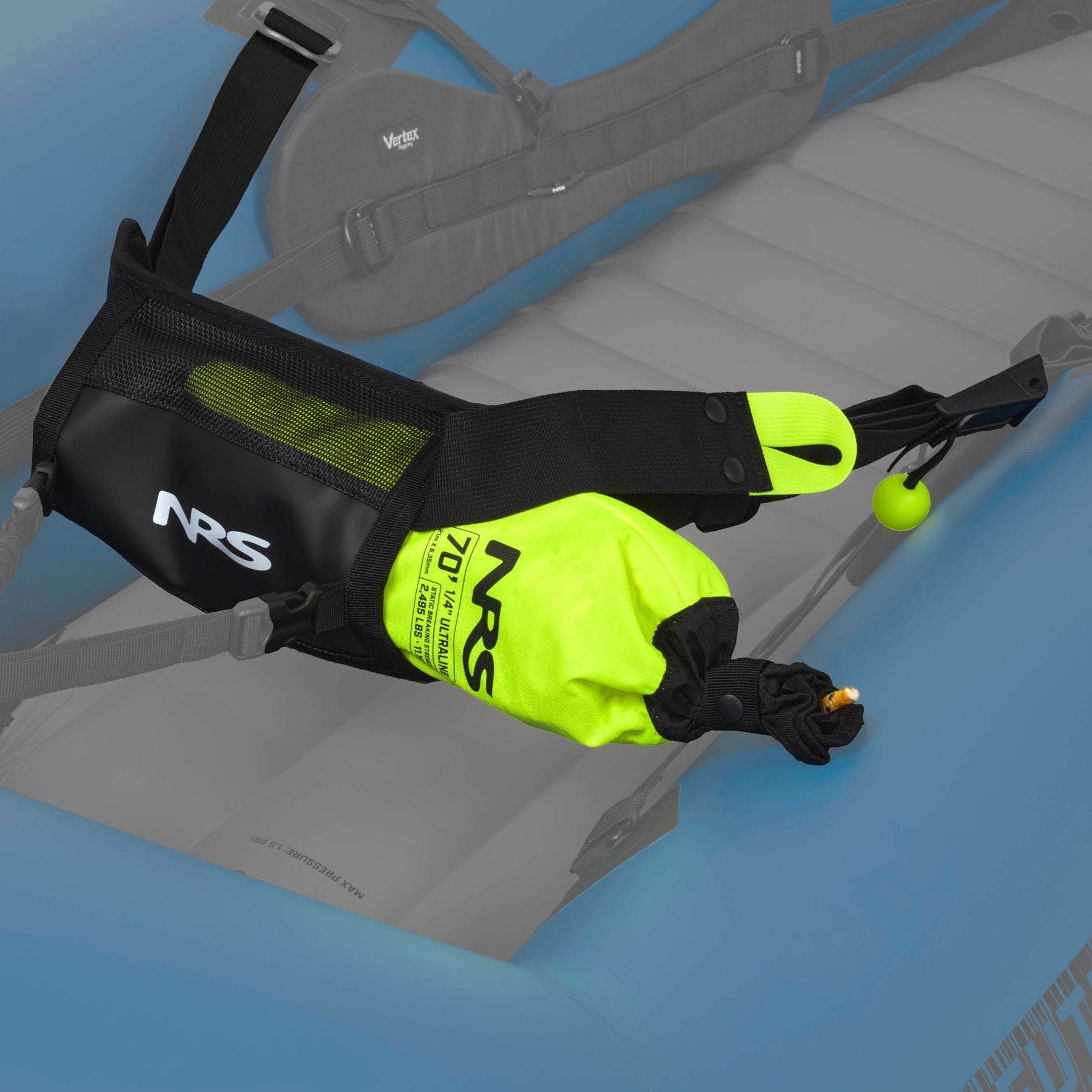 - Un compartiment de rangement intégré à l'arrière du sac à dos Vertex Pro est conçu pour maintenir en toute sécurité la corde de lancer du sac à dos NRS.